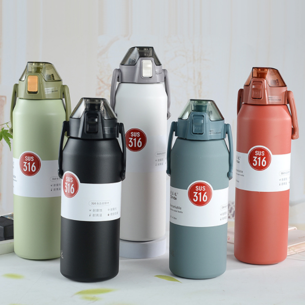 高顏值316不銹鋼保溫杯男女戶(hù)外便攜運(yùn)動(dòng)水壺帶提手雙飲吸管杯